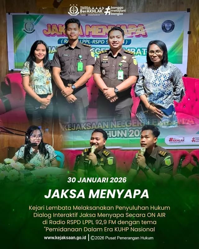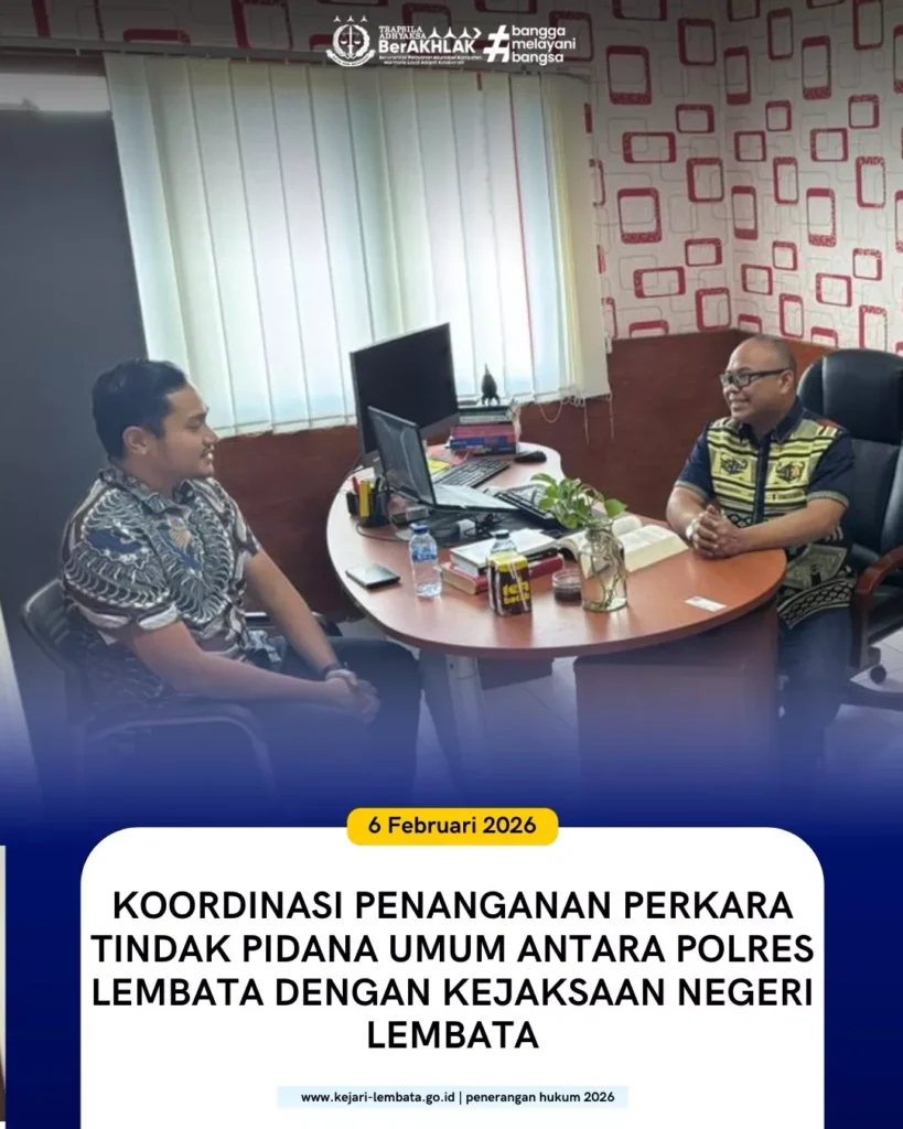Jum’at, 6 Februaru 2026, Kejaksaan Negeri Lembata yang diwakili Kasubsi I Bidang Intelijen Bapak Rio Fahni, S.H. mengikuti Rapat Evaluasi Pendataan dan Program Bagi Orang Miskin Se-Provinsi NTT secara daring bersama Gubernur dan seluruh Kepala Daerah.