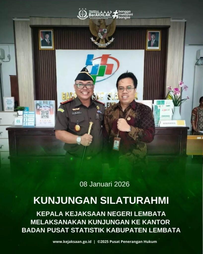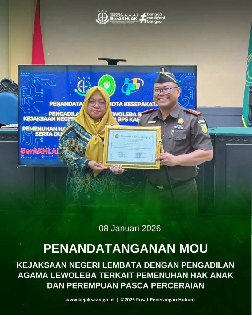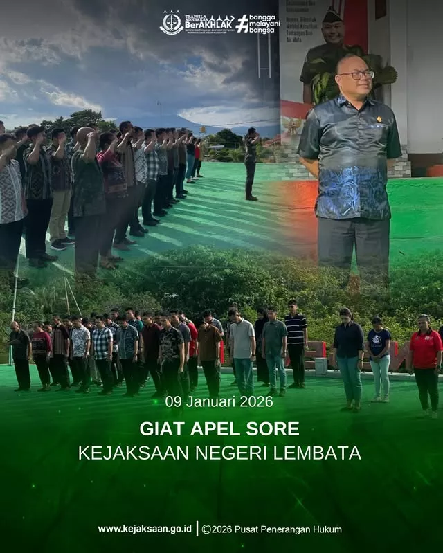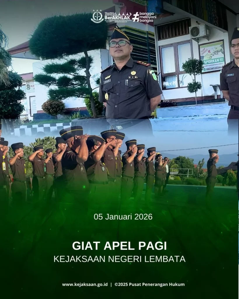 Senin, 19 Januari 2026 Bertempat di Halaman Kantor Kejaksaan Negeri Lembata telah di laksanakan Apel Kerja Pagi. Kepala Kejaksaan Negeri Lembata Bapak Raden Arie Wijaya Kawedhar, S.H. memimpin langsung kegiatan apel pagi dan diikuti oleh seluruh pegawai pada Kejaksaan Negeri Lembata.