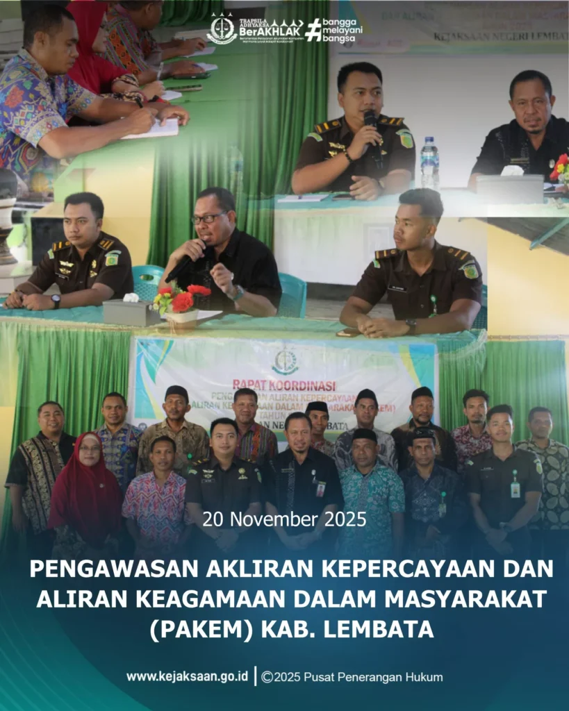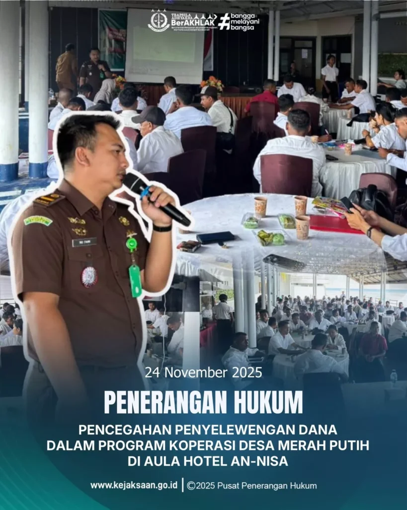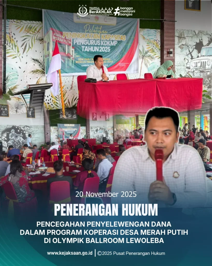Kejaksaan Negeri Lembata yang diwakili oleh Kepala Sub Seksi I Bidang Intelien, Rio Fahni, S.H., Beserta Staff intelijen Kembali Melaksanakan Kegiatan Penerangan Hukum bagi Pengurus Koperasi Desa/Kelurahan Merah Putih (KDKMP) yang dilaksanakan di Aula Hotel AN-NISA Kab. Lembata. Dalam Penerangan Hukum Kali ini berfokus pada pemahaman terkait Koperasi Merah Putih. Melalui edukasi ini, diharapkan para […]