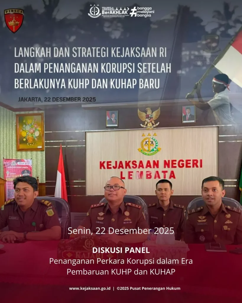 Senin, 22 Desember 2025. Kejaksaan Negeri Lembata mengikuti Diskusi Panel dengan tema “Penanganan Perkara Korupsi dalam Era