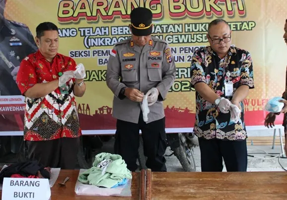 Dalam kegiatan tersebut dalam eksekusi pemusnahan barang bukti terhadap 3 (tiga) perkara yang diutus oleh pengadilan dan telah berkekuatan hukum tetap.