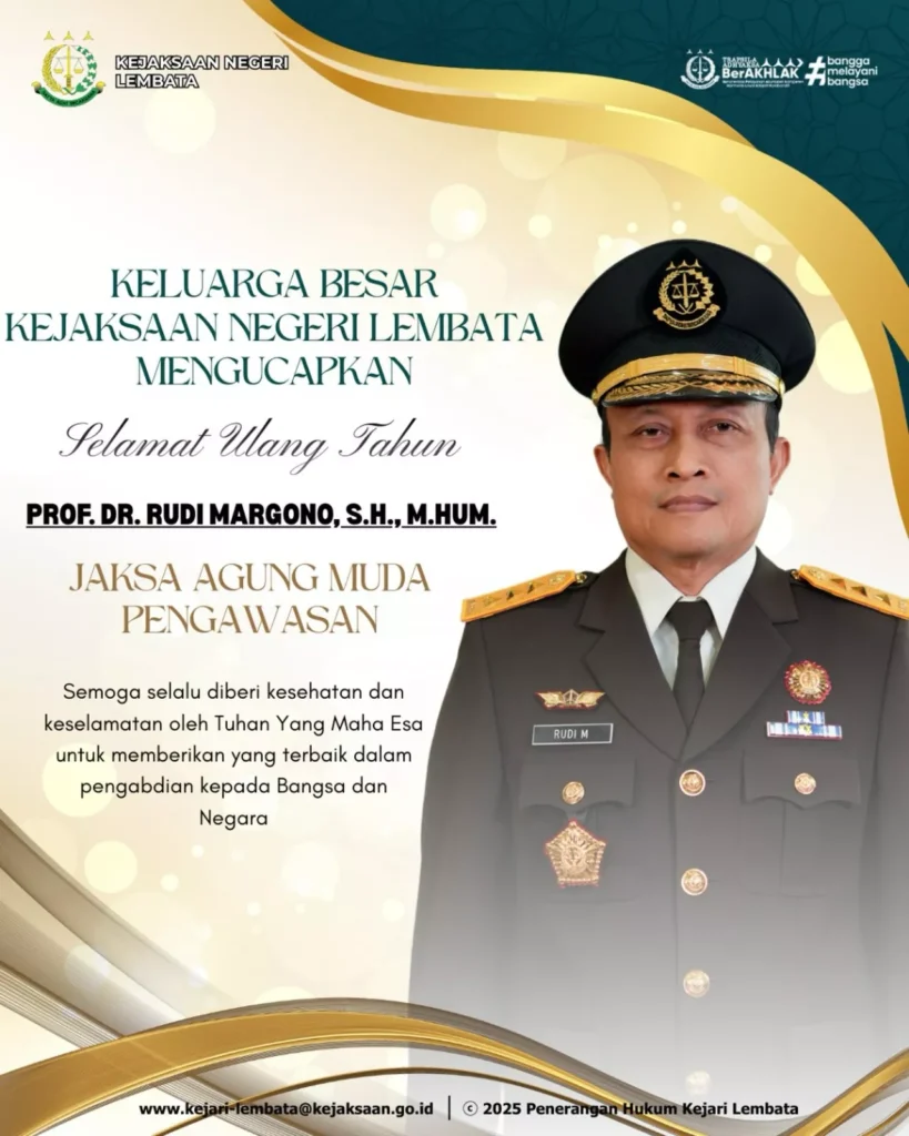 Keluarga Besar Kejaksaan Negeri Lembata Mengucapkan Selamat Ulang Tahun Jaksa Agung Muda Pengawasan