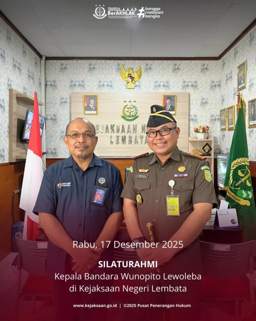 Rabu, 17 Desember 2025, Kepala Bandara Wunopito Lewoleba melakukan kunjungan silaturahmi ke Kejaksaan Negeri Lembata yang disambut oleh Kepala Kejaksaan Negeri Lembata Bapak Raden Arie Wijaya Kawedhar, S.H.